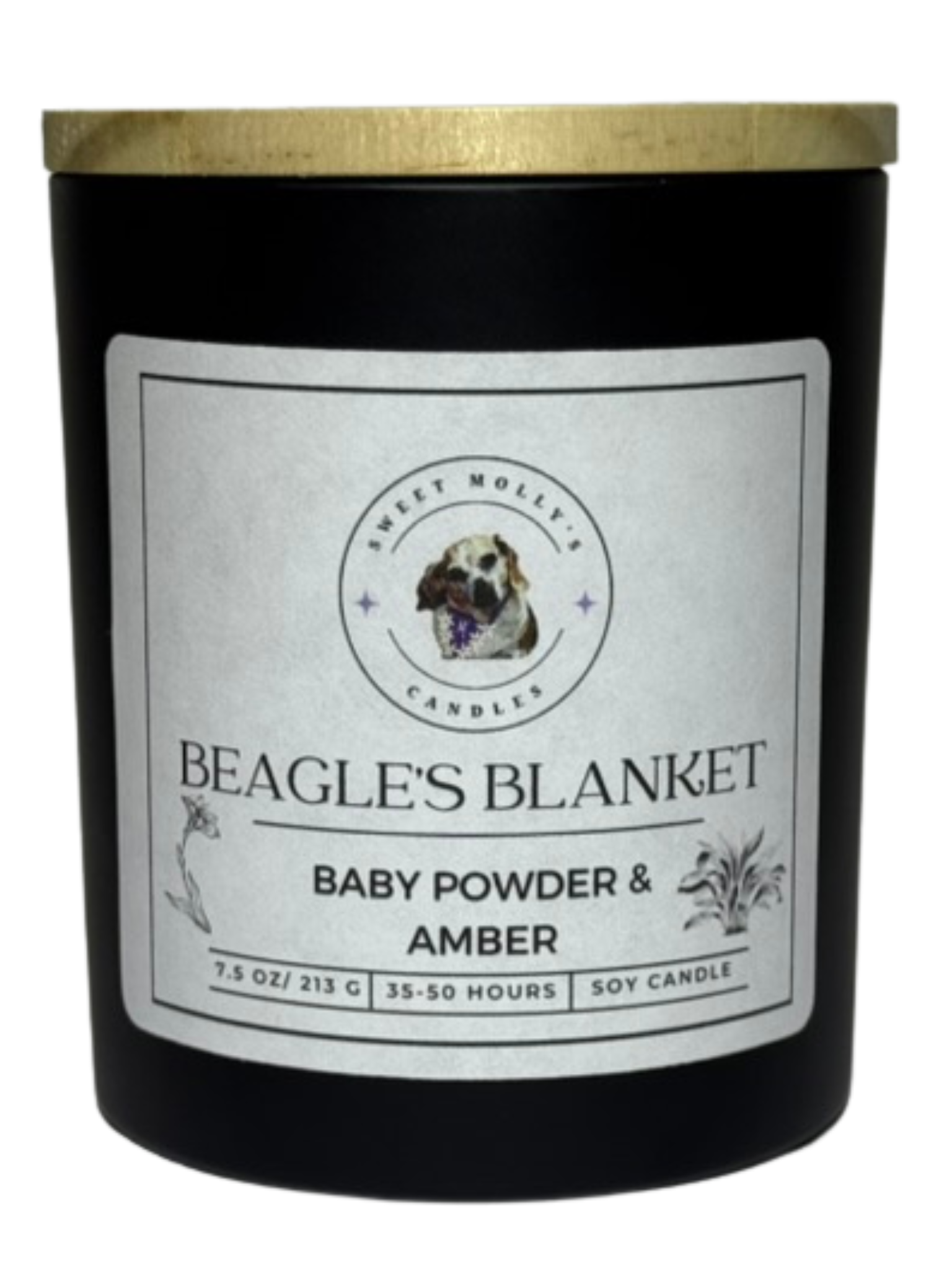 Beagle's Blanket is a soothing blend of classic baby powder and golden amber. It's clean, comforting, and softly sensual--like a warm hug at the end of a long day.